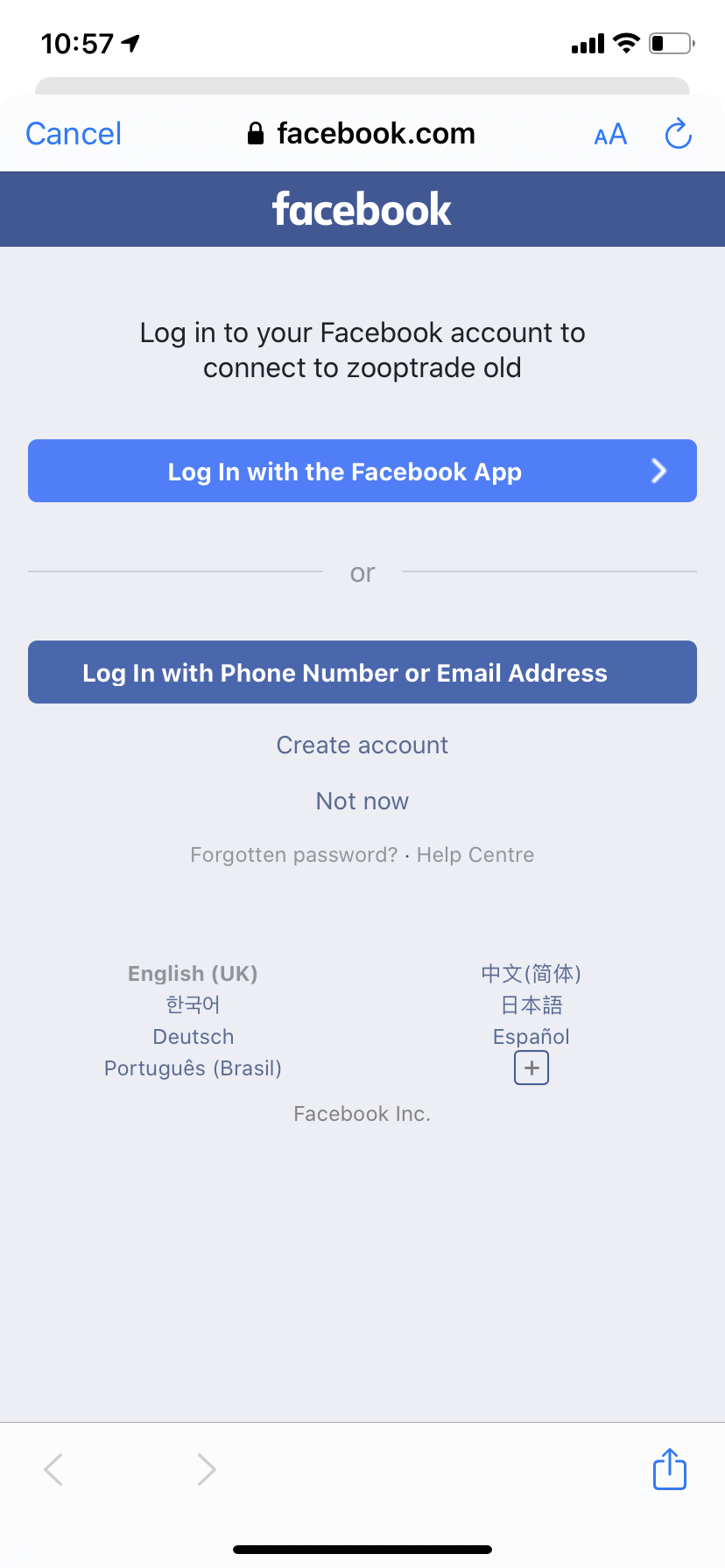 }**点击按钮打开facebook登录页面,通过我的电子邮件和密码登录,但如果通过安装facebook应用程序登录,它需要我下一个允许页面,但比下一页显示空白:(