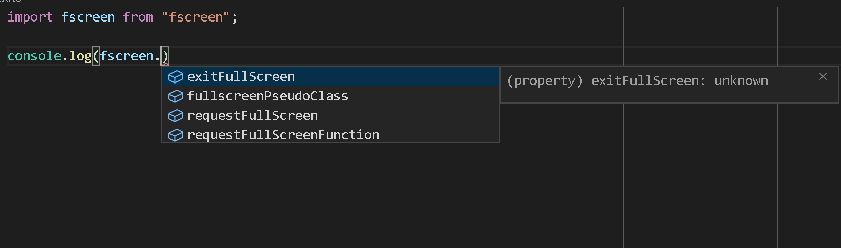 TS2339: Property 'requestFullscreen' does not exist on type 'typeof fscreen'.感觉我就快到了。已经在这件事上浪费了那么多时间,我被困住了。那么,我如何修改我的TSD以便它正确地定义默认的导出呢?