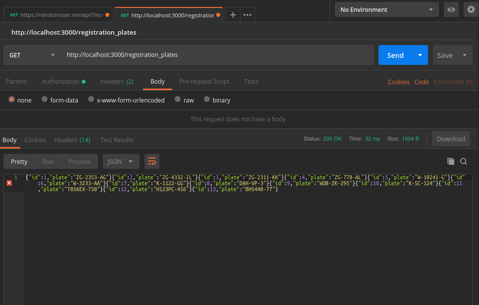 json.plate registration_plate.plate.to_s我确实从服务器得到了一个正常的响应: