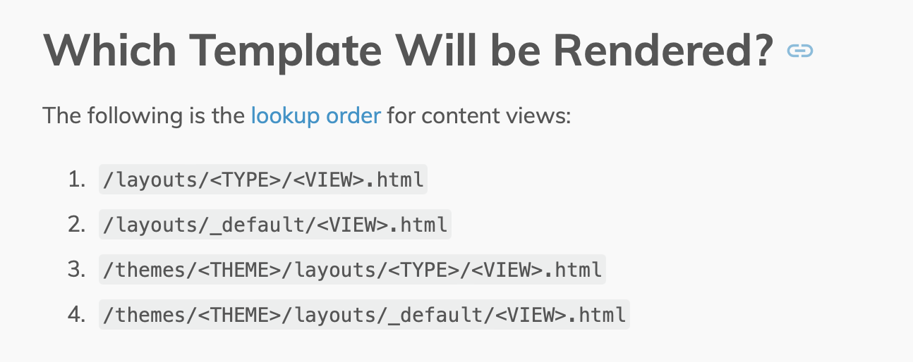 在默认情况下,Hugo将使用布局/教程/single.html作为教程一节,请参阅https://gohugo.io/templates/lookup-order/#examples-layout-lookup-for-regular-pages。