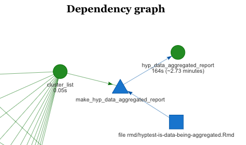 在我的大型项目(使用~10+报告)中,完全类似的代码不能完全正常工作。也就是说,在构建报表时,knitr_in对象不会被显示为图形中的蓝色方块,在我的大型项目中使用drake::vis_drake_graph()。