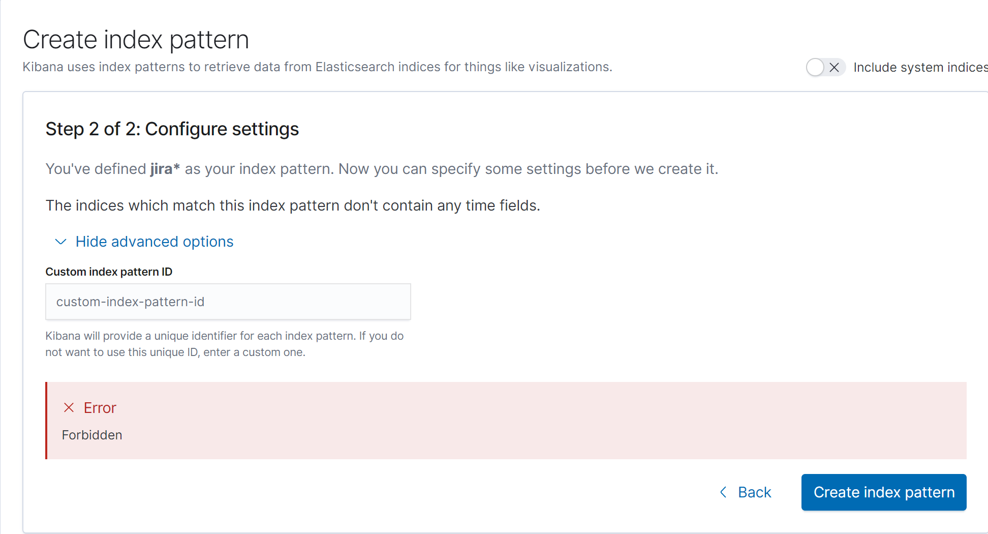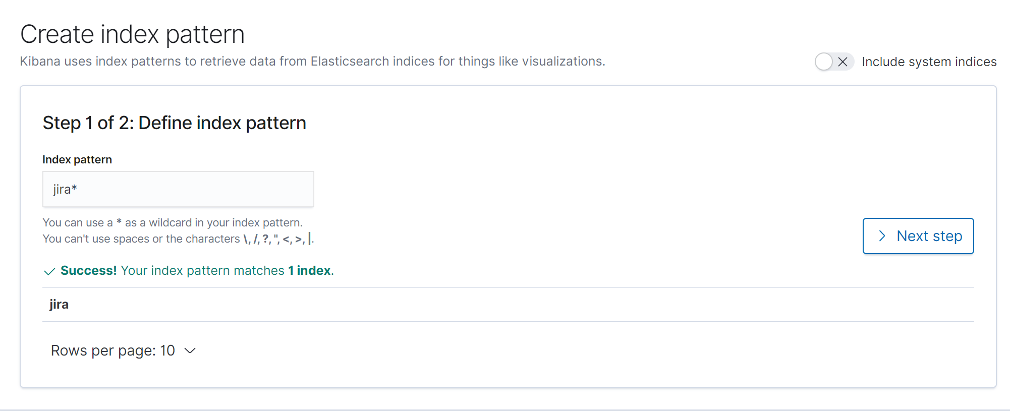 我已经发布了jira*索引模式,并在Kibana上提供了如下所示