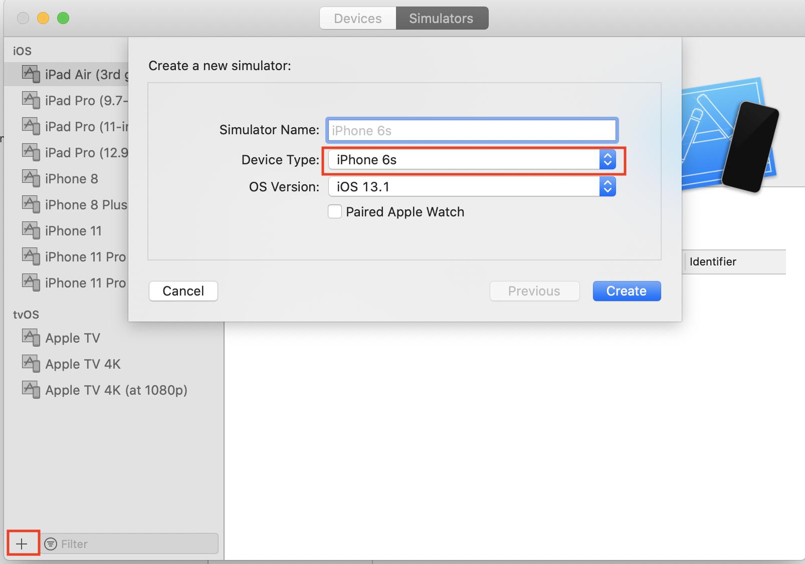 Xcode 11无法看到iPhoneX或其他模拟器-首先需要添加新的模拟器-然后单击模拟器的左下角,然后选择要添加的设备