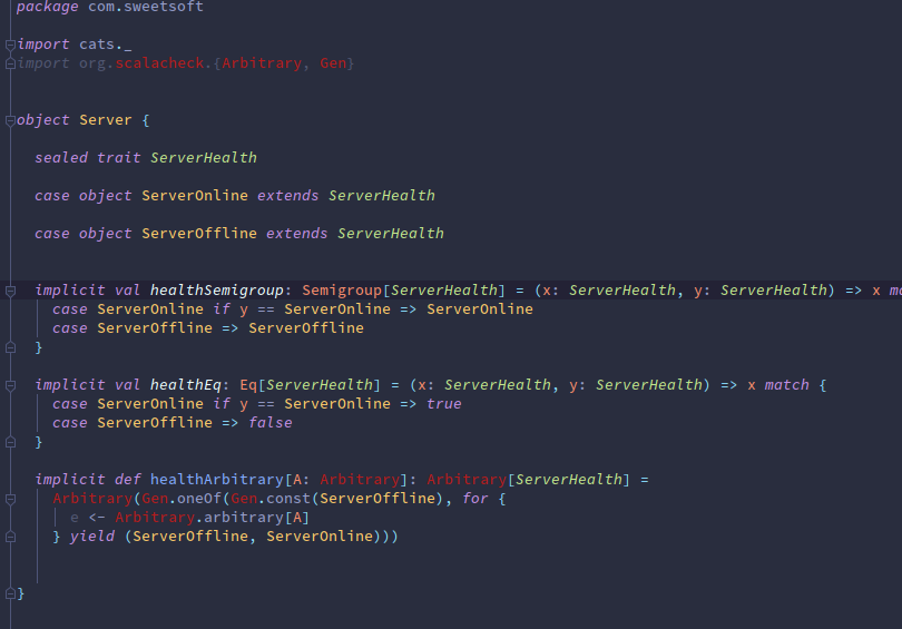 implicit val healthSemigroup: Semigroup[ServerHealth] = (x: ServerHealth, y: ServerHealth) => x match {