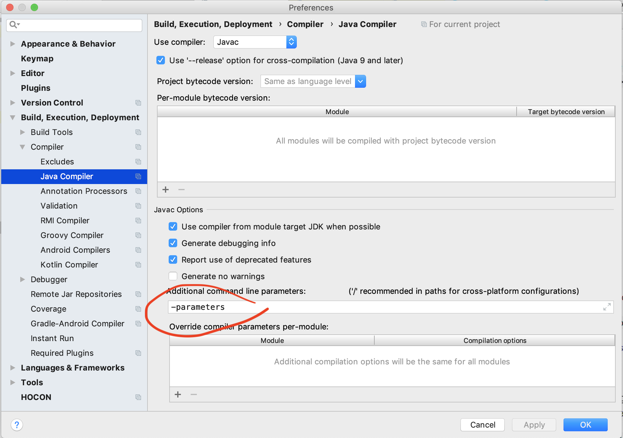 Corda使用自己的序列化框架,该框架要求Java编译器在生成字节码时保留参数名,以便以后能够正确地重新创建对象。