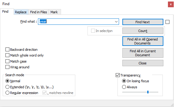 在应用程序中,使用搜索功能在所有打开的文档中查找特定的字符串。