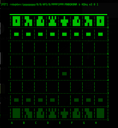 $checkerboard = [["r","n","b","q","k","b","n","r"],["p","p","p","p","p","p","p","p"],["1","1","1","1","1","1","1","1"],["1","1","1","1","1","1","1","1"],["1","1","1","1","P","1","1","1"],["1","1","1","1","1","1","1","1"],["P","P","P","P","1","P","P","P"],["R","N","B","Q","K","B","N","R"]]在原地,这是一种立场: