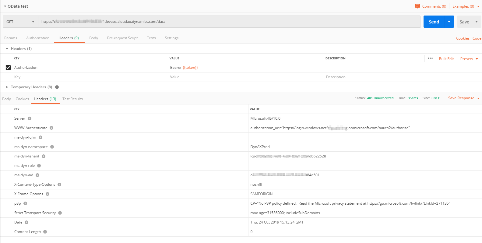 我们试着联系到https://xxxxxxdevaossoap.cloudax.dynamics.com和https://xxxxxxdevaos.cloudax.dynamics.com