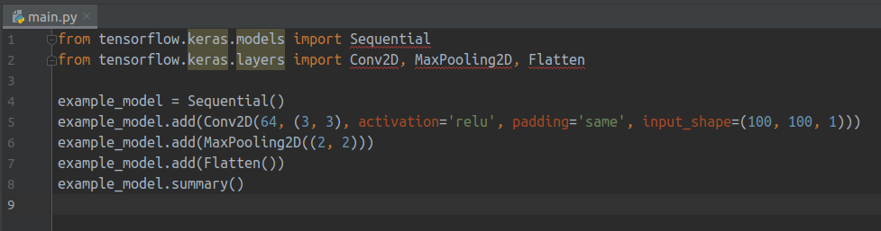 example_model.add(Conv2D(64, (3, 3), activation='relu', padding='same', input_shape=(100, 100, 1)))