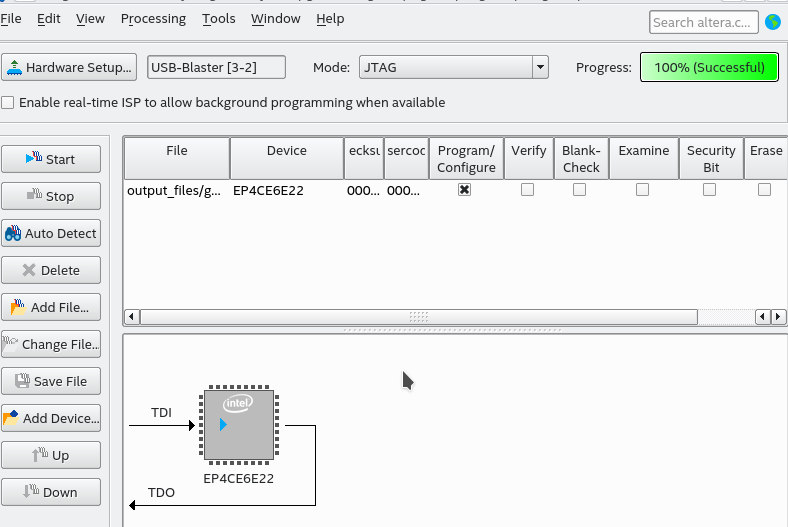 我想用OpenOCD运行。无论我需要什么样的文件从quartus,但执行应该由OpenOCD完成。我目前正试图用sof文件来完成它。quartus为程序员使用的那种。