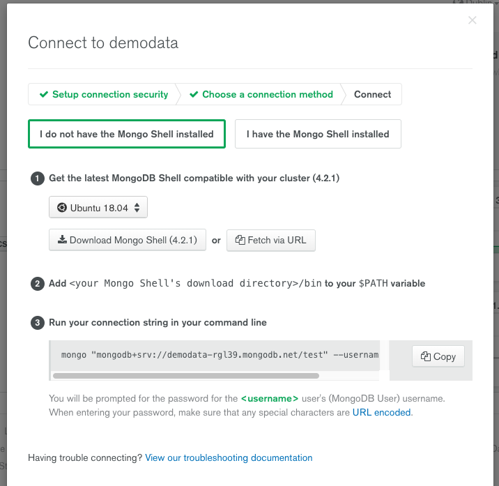 我正在尝试运行非常简单的代码,以找出如何在MongoDB阿特拉斯云中使用pymongo。