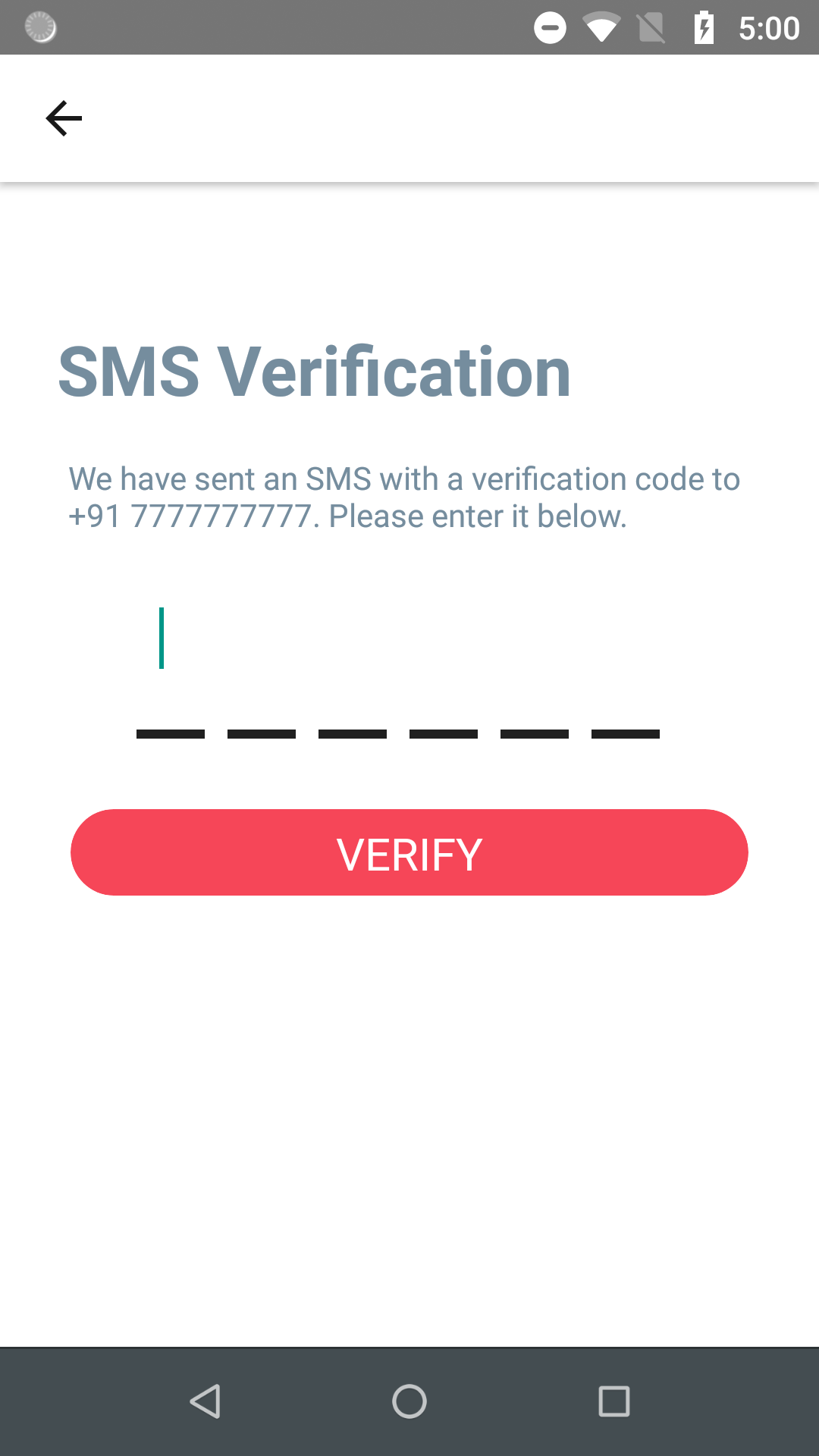 <Text style = {styles.secondText}>We have sent an SMS with a verification code to +91 7777777777. Please enter it below.</Text>