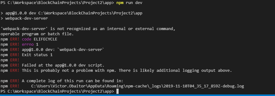 当我试图运行"npm“时,我会得到一个与web包相关的错误,如'webpack-dev-server‘不被识别为内部或外部命令、可操作的程序或批处理文件。