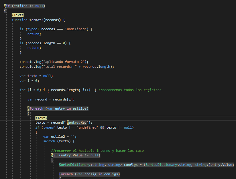 要“欺骗”Razor,保留使用intellisense进行Javascript验证的可能性,只需在行尾添加一个注释,并使用相反的括号: