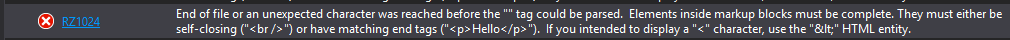 我的项目是一个基于asp网络核心的项目。在我的index.cshtml文件中,visual显示了一个错误代码RZ1024: