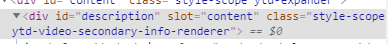 html_attr(Description, name = "content")虽然这确实指向视频描述,但我没有获得完整的视频描述,而是在几行之后被切断的字符串: