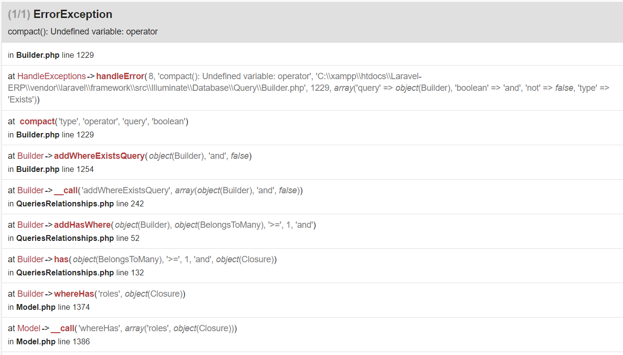 第1229行: Builder.php ():未定义变量: operator Script php artisan优化处理错误代码1返回的后置-cmd事件
