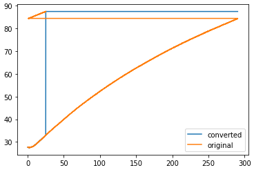 mdf = MDF(file)我编写了一个小脚本来读取文件,并绘制转换(内插的)数据与原始数据点之间的区别,以展示我的意思:
