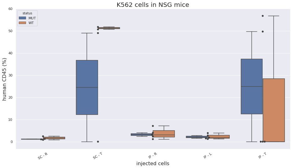 ax.set_title(label='K562 cells in NSG mice', fontsize=20)