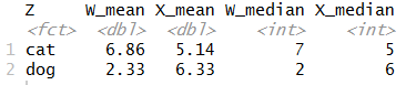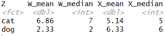 summarized <- Data %>% group_by(Z) %>% summarise_if(is.numeric,funs(mean,median),na.rm=T)