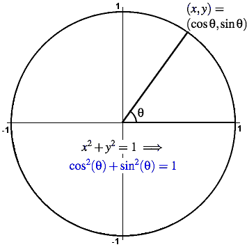 所以现在你需要找到一个圆的方程(应该带你回到HS trig):sin(theta)^2 + cos(theta)^2 = radius