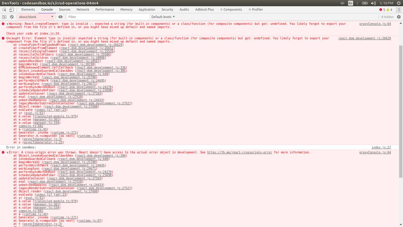 proxyConsole.js:64错误:抛出了一个跨源错误。React无法访问开发中的实际错误对象。