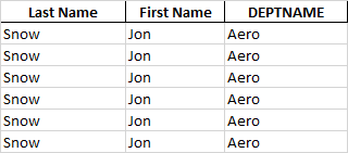 'DEPTNAME':['Aero','Aero','Aero','Aero','Aero','Aero']})