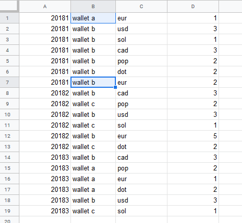 现在,我们希望能够检索的数量、的每个资产、每个周的和的、每个钱包。就像我说的,它变成了exponential:--你是如何处理它的?谢谢
