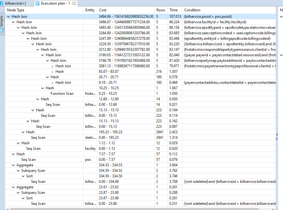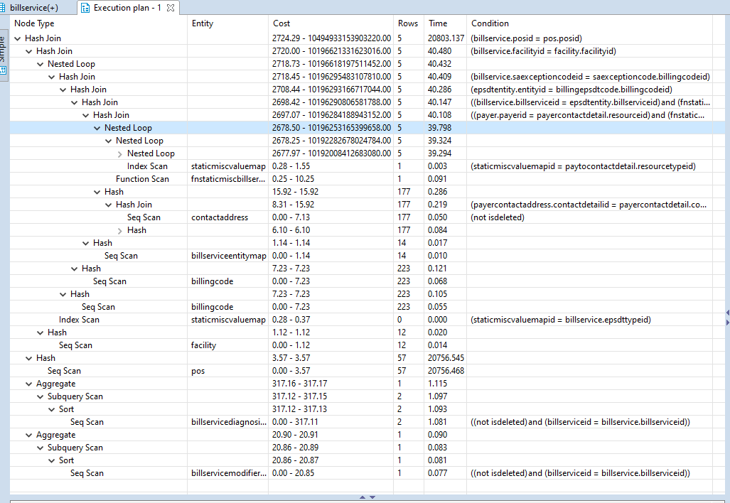 billservice.posid = pos.posid更具体地说,它对pos表进行了序列扫描。它应该在做索引扫描。