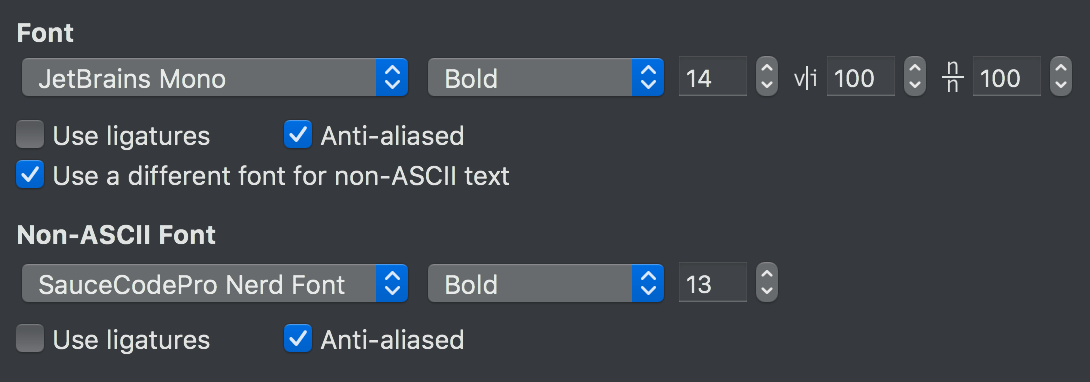 我还发现,JetBrains Mono也是一个很好的开发字体,因为它是如此容易阅读。对于Nerd字体,您可以这样使用: