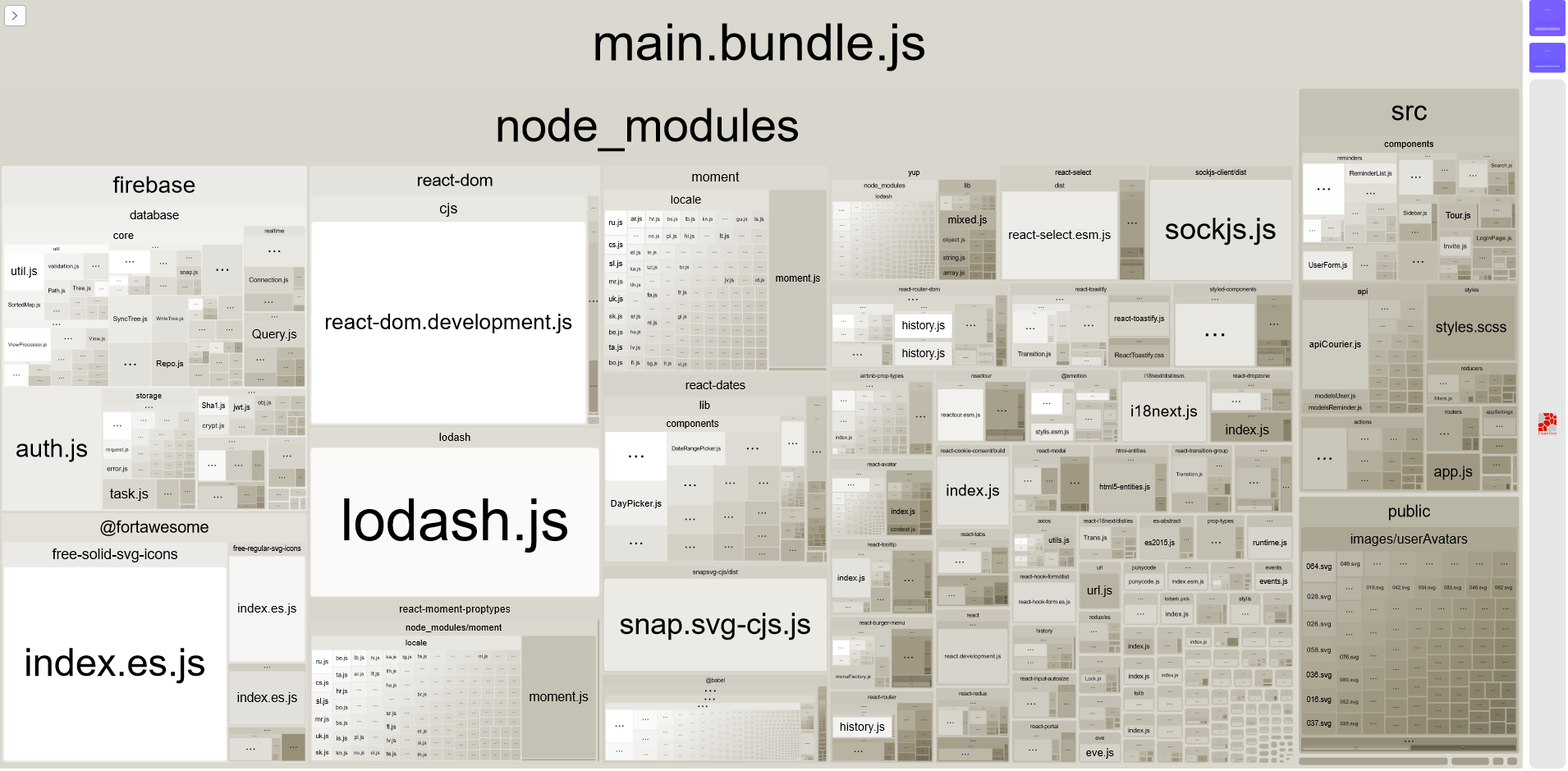 我有一个很大的包,需要分成几个块才能低于2MB的PWA限制。从BundleAnalyzerPlugin中我可以看到,尝试将目录、方格和瞬间分割成单独的块/包文件会使我受益。