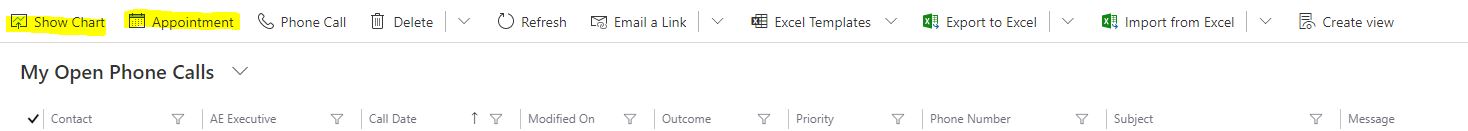 在新的动态统一客户端界面365中,我试图隐藏一些按钮。特别是“显示图表”和“约会”按钮。我使用的是2016年的丝带工作台。到目前为止,我已经搜索过了,但是没有看到任何其他工具来修改命令栏。