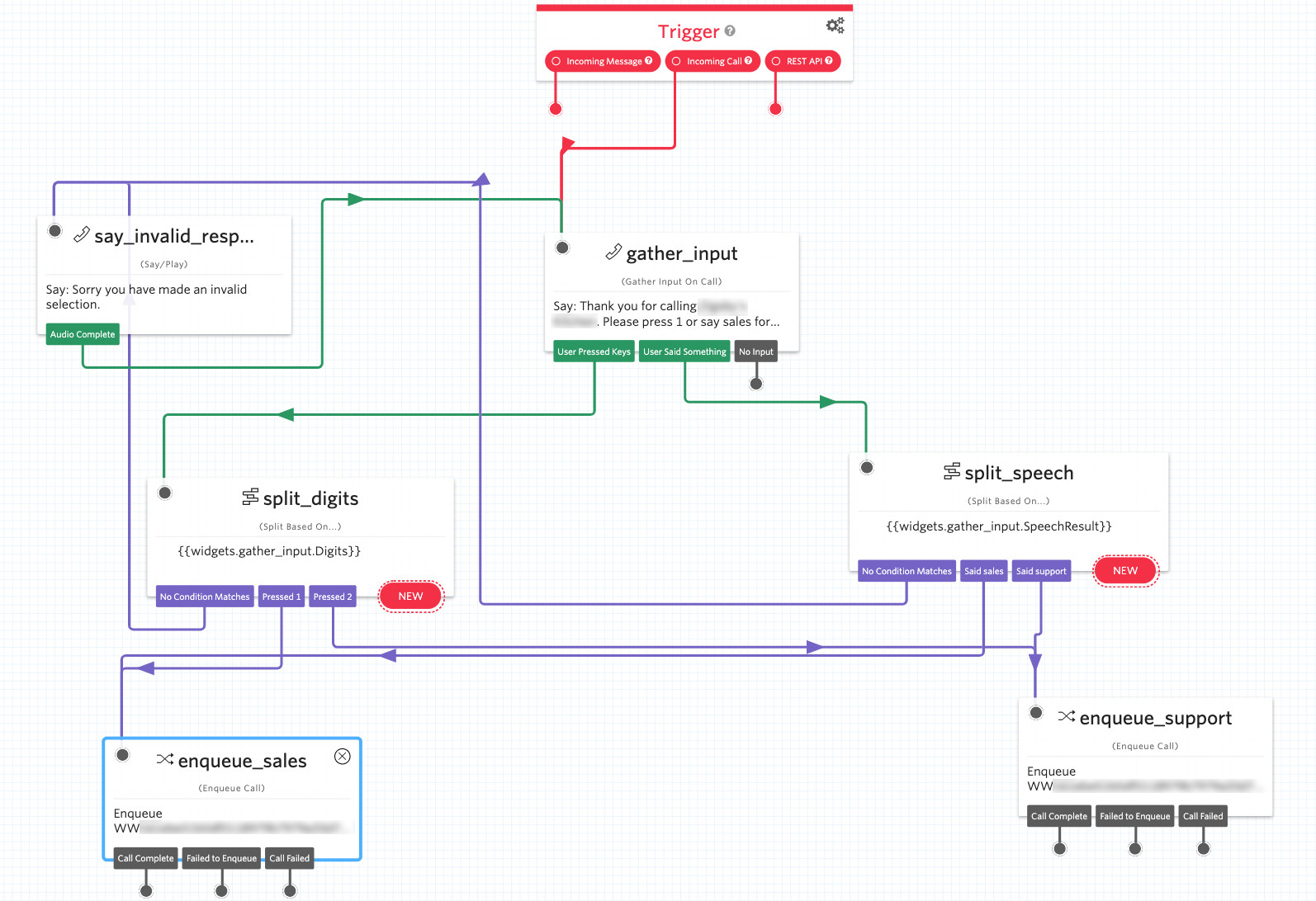 最初,我们通过OpenVBX提供了一个解决方案,尽管我不认为这是支持的(对Twilio平台进行了改进,从而产生了新的解决方案)。我尝试只使用Twilio托管平台(StudioFlow)和函数。