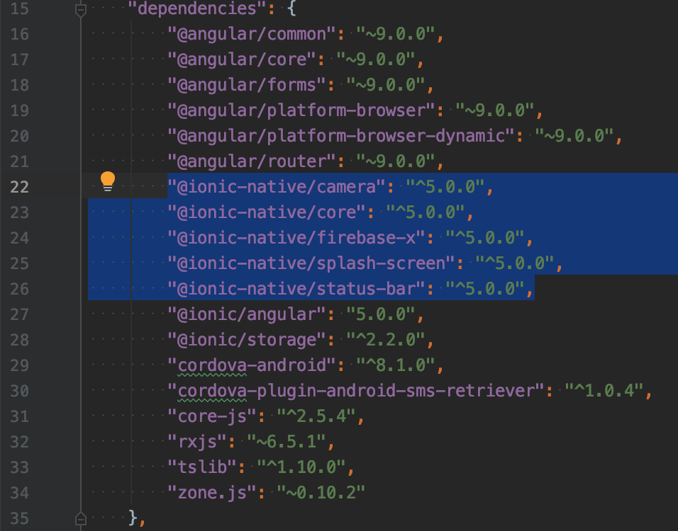 因此,您需要更新@ionic-native的任何/所有依赖项。为此,请查看package.gson文件中以@ionic-native/开头的所有依赖项,并逐一更新它们。