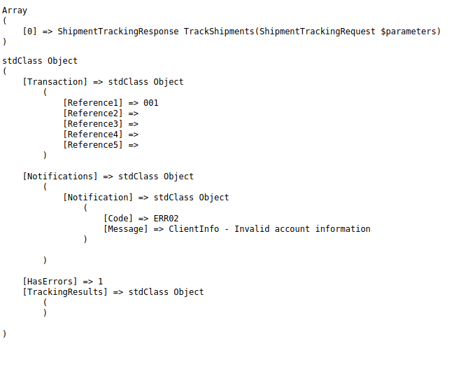 $auth_call = $soapClient->TrackShipments($params);