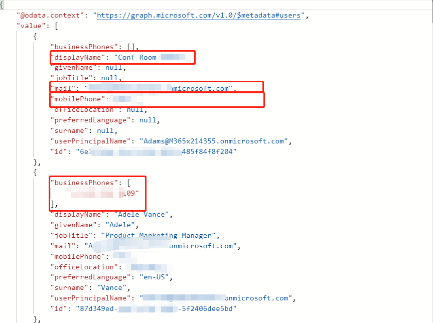 我交叉签入Azure Active Directory Portal,所有用户都配置了商务电话和移动电话。请帮帮忙。