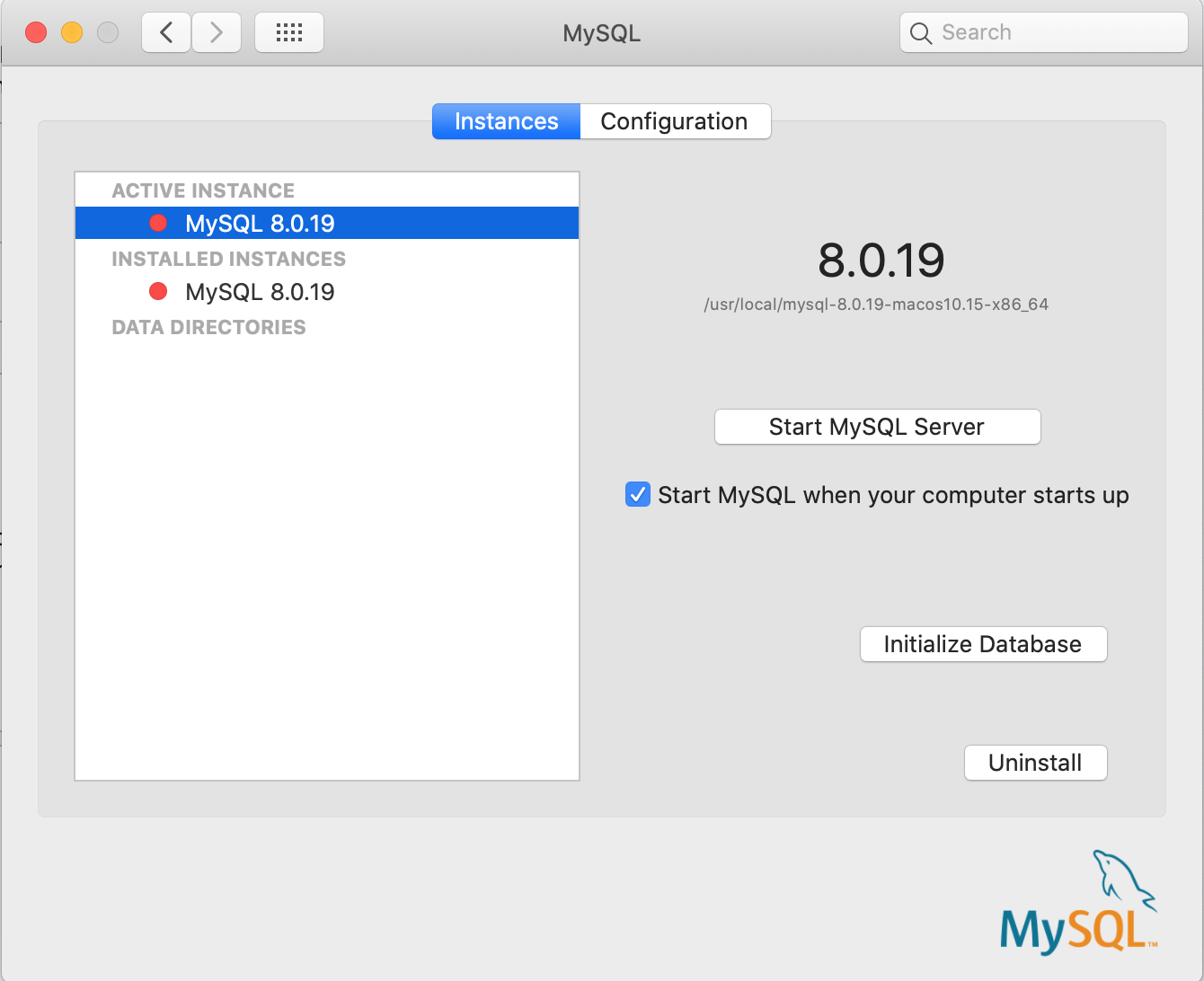 2020-02-25T05:27:00.6NZ mysqld_safe Starting mysqld daemon with databases from /usr/local/mysql/data