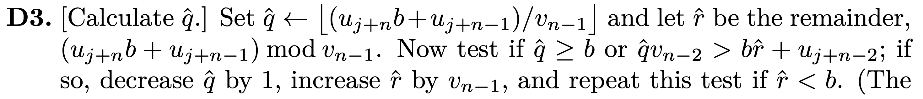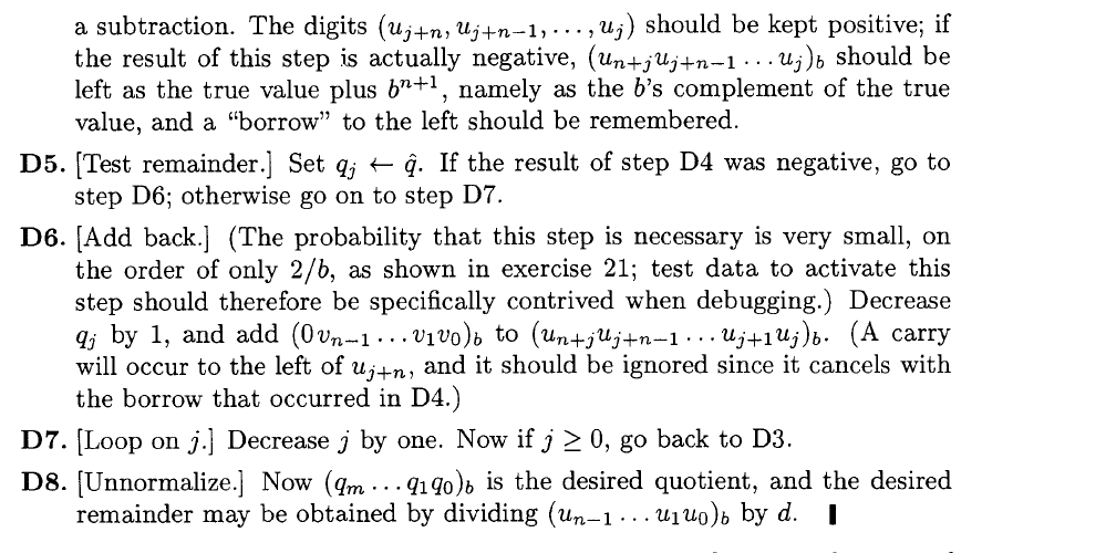 循环D.3通过D.7的第一次迭代不是op,因为第一次迭代中的qhat = floor((0 * b + 2143027200) / (2254962688)) = 0。