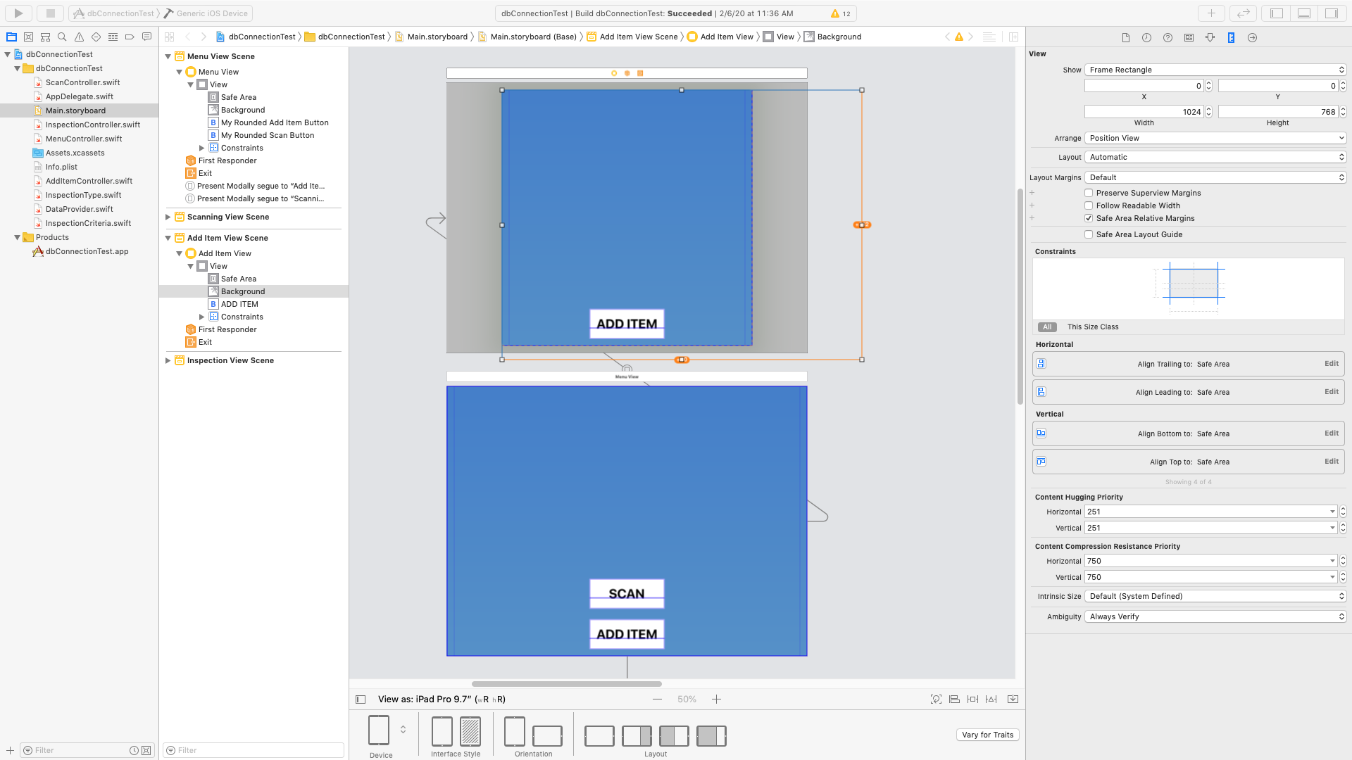 运行Xcode 11.我在一个普通条形码应用程序中有两个场景,一个是主菜单,另一个是add项目场景,我的设计考虑到了iPad。随着ipad 9的尺寸类(wR hR)被设置为景观方向,我添加的项目场景有大量的与可见内容相邻的灰色区域,这与主场景不同(虽然肖像中也有一些灰色区域)。