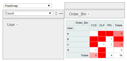 User CCD OLP PPL (all) 1 a 0 2 2 4 2 b 2 2 1 5 3 c 2 1 1 4 4 d 1 2 0 3 5 (all) 5 7 4 16