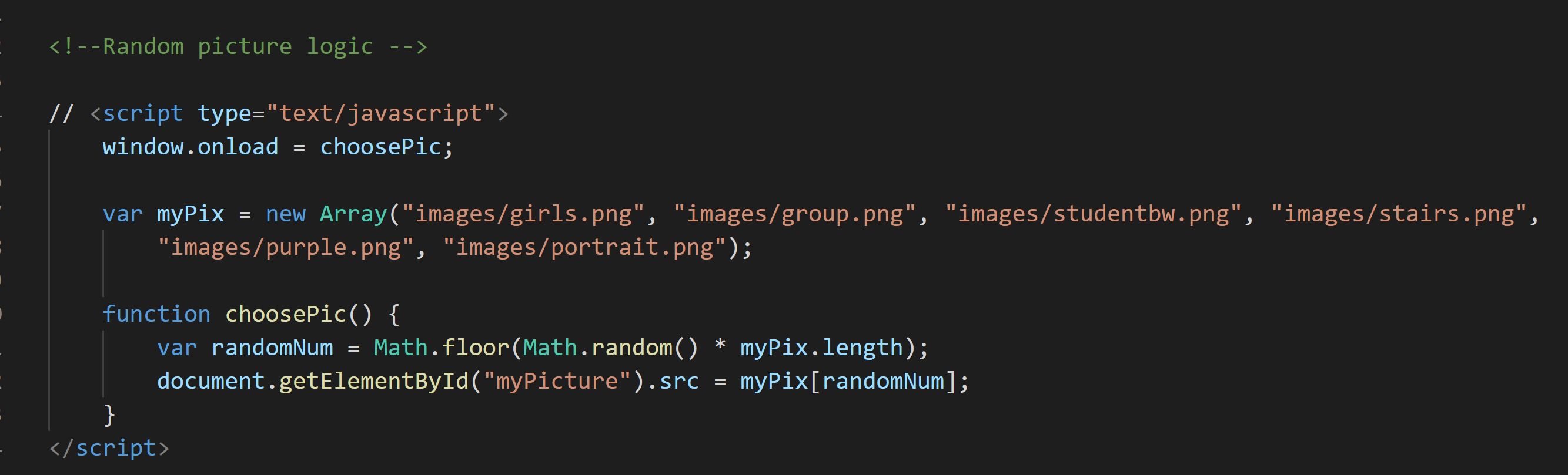 document.getElementById("myPicture").src = myPix[randomNum];