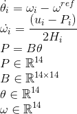 m.Equations([omega[i,0].dt() == (u-P)/(2.0*H) for i in range(14)])