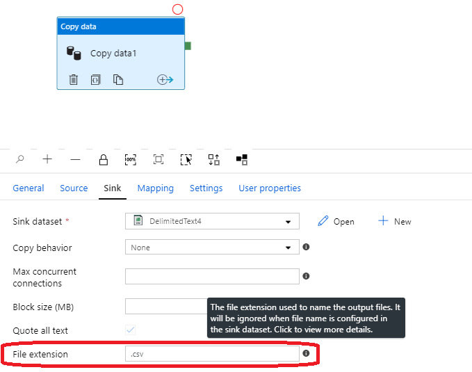 当我们将csv文件从本地文件夹复制到Azure时,我们可以设置文件扩展名:.csv