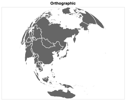 对于正交投影,决定投影如何居中的是rotate属性,而不是center属性。rotate属性由围绕三个主轴的旋转度组成。例如,要构造围绕long=140,lat=40的投影,可以这样做: