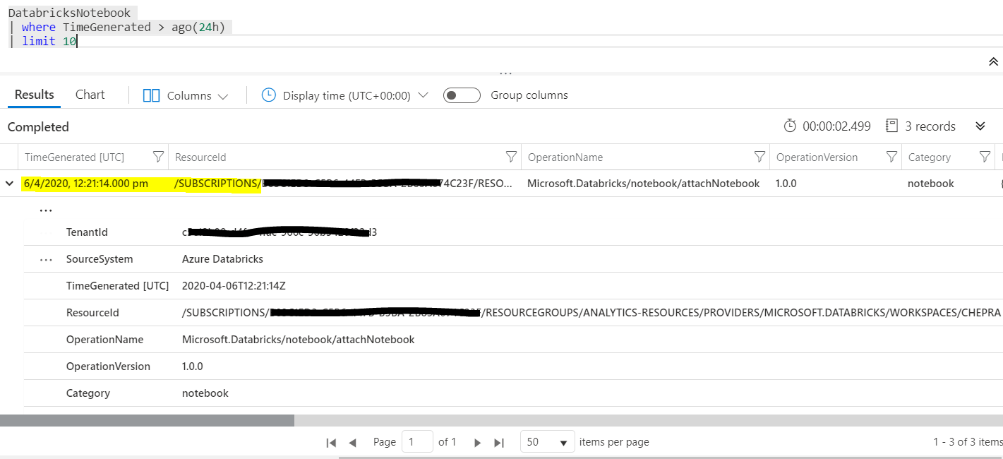 STEP2:在配置诊断设置之后,您可以转到Logs => Logs => Log Management =>,您将发现Databricks notebook =>运行以下查询,以获取有关笔记本的详细信息。
