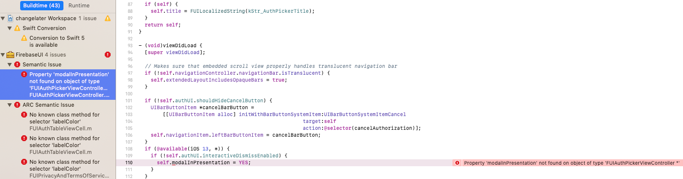 Property 'modalInPresentation' not found on object of type 'FUIAuthPickerViewController *'