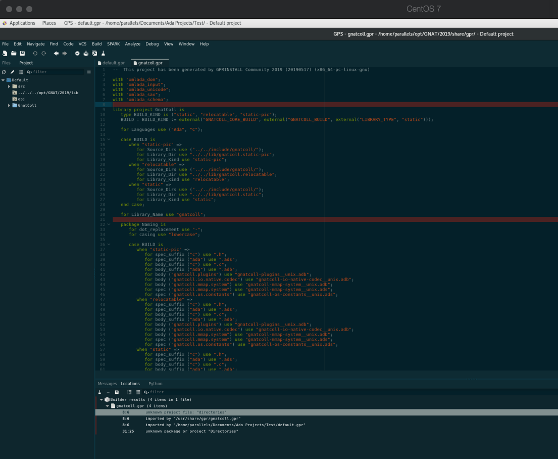 [parallels@localhost sql]$ 我使用Linux 7,并且在这里安装了GNAT:/home/parallels/opt/GNAT/2019/bin/gps。