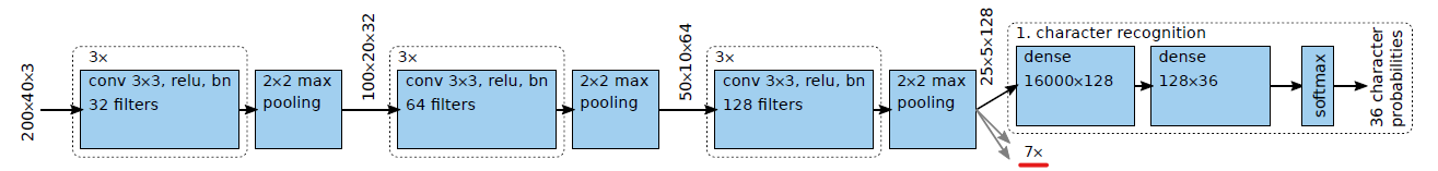 我们团队的目标是创建一个无分割的车牌识别模型,其体系结构如下: