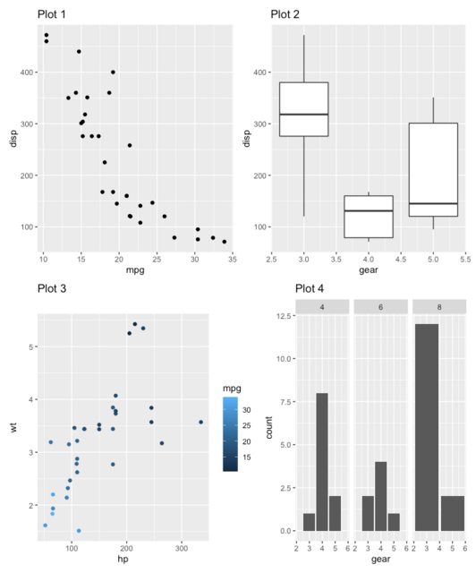 ggtitle('Plot 4')这些可以安排成这样