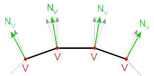 如果每个顶点计算法向量,则相邻面共享顶点坐标和对应的法向量。这将导致从面对面到面对面的平稳过渡。